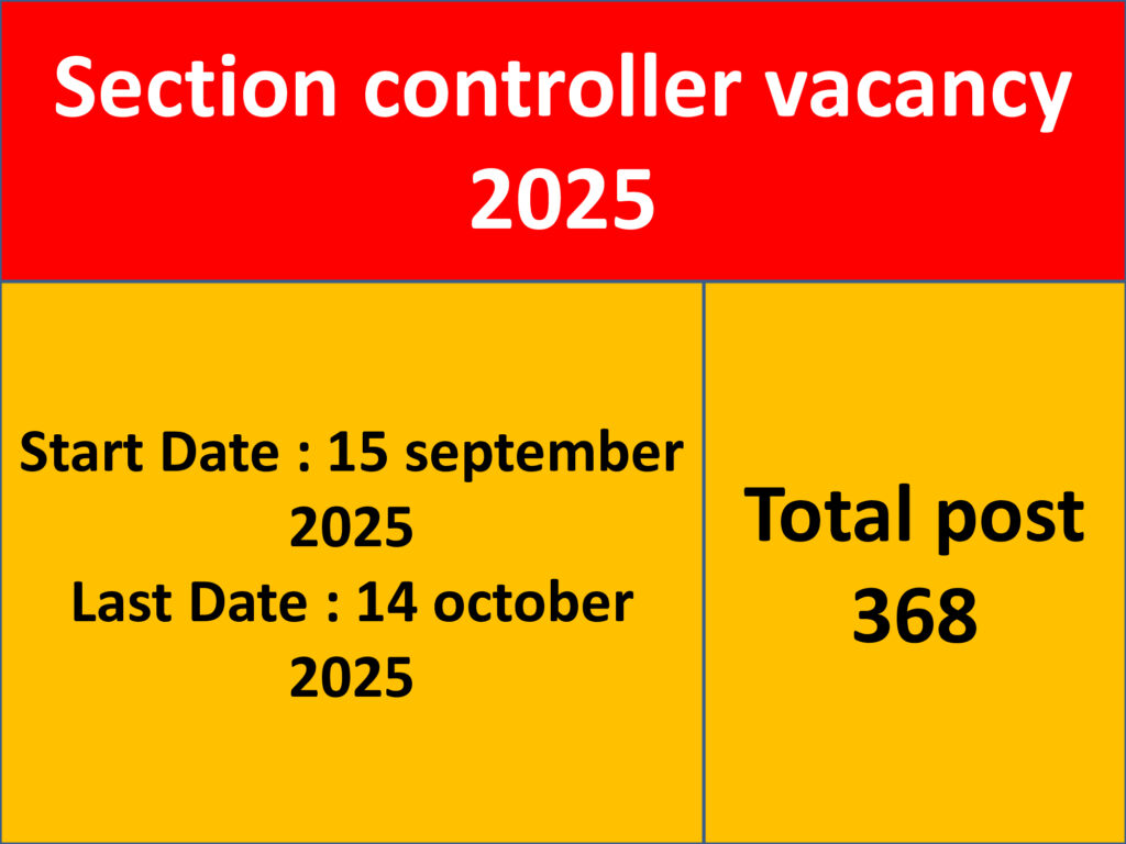 रेलवे रिक्रूटमेंट बोर्ड (RRB) ने हाल ही में सेक्शन कंट्रोलर के पदों पर भर्ती का Official notification जारी कर दिया है , Railway Section Controller Online Form 2025 आप हमारी इस वेबसाइट द्वारा apply सकते हैं। इस भर्ती में 368 उम्मीदवारों को लिया जायेगा, इस भर्ती के ऑनलाइन फॉर्म 15 September से शुरू होंगे और 14 October 2025 तक उमीदवार अपना फॉर्म खुद घर बैठे भर सकते हैं क्योकि इस भर्ती में ऑनलाइन फॉर्म भरने की प्रक्रिया होगी। RRB सेक्शन कंट्रोलर की इस भर्ती के लिए Minimum Age 20 साल होनी चाहिए और Maximum Age 33 साल रेलवे बोर्ड द्वारा रखी गयी है। इस भर्ती की पूरी जानकारी निचे विस्तार से बताई गयी है।